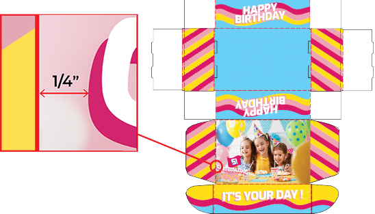 Remember that each panel is going to fold and your artwork or text must orient correctly when assembled. Check the Graphics/Text Orientation download here or at the top of this page to see how to orient to panels on each box style.